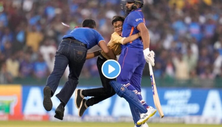 Rohit Sharma: भारतामध्ये क्रिकेट हा खेळ कमालीचा लोकप्रिय झाला आहे. आपल्या आवडत्या खेळाडूंना भेटण्यासाठी असंख्य चाहते प्रयत्न करत असतात. आपल्या आवडत्या खेळाडूंना भेटण्यासाठी चाहते काहीही करू शकतात. हे आपल्यासाठी नवीन नाही. सामना सुरू असताना अनेक चाहते थेट मैदानात धाव घेत खेळाडूंना मिठी मारण्याचा प्रयत्न करत असतात. हा प्रकार भारताचा माजी कर्णधार महेंद्रसिंग धोनी (MS Dhoni) सोबत अनेकदा घडला आहे. आज पुन्हा एकदा हा प्रकार रोहित शर्मा (Rohit Sharma) फलंदाजी करत असताना घडला. (IND vs NZ)