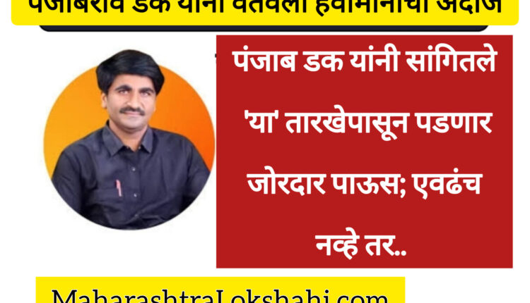 मुर्तीजापुर कृषी उत्पन्न बाजार समितीने आयोजित केलेल्या शेतकरी मेळाव्यामध्ये पंजाबराव डक यांनी शेतकऱ्यांना हवामानाचा अंदाज सांगितला. राज्यात उद्यापासून अर्थात २४ पासून मान्सून सक्रिय होईल, असा अंदाज पंजाबराव डक यांनी वर्तवला आहे. त्यामुळे उद्यापासून जोरदार पाऊस पडेल असा अंदाज पंजाबराव डक यांनी वर्तवला आहे. पूर्व विदर्भ आणि पश्चिम विदर्भात पावसाचा जोर अधिक असणार आहे.