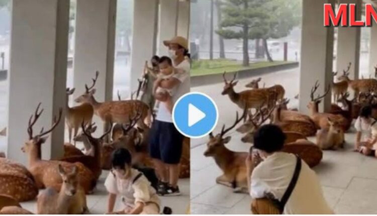 सोशल मीडियावर व्हायरल झालेला हा व्हिडिओ जपान मधील असून, बाहेर जोरदार पाऊस पडत असल्याने, नाईलाजाने हरणांना पावसापासून स्वतःला वाचवण्यासाठी माणसांमध्ये जावं लागलं. आपल्यासारखीच माणसं देखील पावसापासून स्वतःला वाचवण्यासाठी आडोशाला उभी आहेत, कदाचित हा विचार त्यांच्या मनामध्ये आला असावा, आणि म्हणून त्यांना भीती वाटली नसावी. मात्र सोशल मीडियावर व्हायरल झालेला हा व्हिडिओ फारच प्रेमळ आणि हृदयाला स्पर्श करणारा आहे.