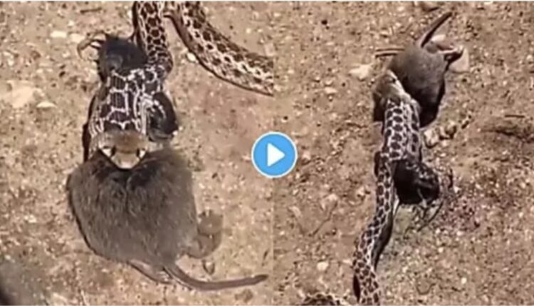 साप (snake) उंदराला (mouse) गिळताना तुम्ही अनेकदा पाहिलं असेल. सापाला पाहता क्षणी मंदिर पळून जातो, हे देखील तुम्ही अनेकदा पाहिलं असेल. उंदीर सहसा सापाच्या तावडीतून सुटत नाही. हे तुम्हाला चांगल्या प्रकारे माहीत आहे. सोशल मीडियावर व्हायरल झालेला व्हिडिओ डोळ्यांना विश्वास न बसणार आहे. सोशल मीडियावर व्हायरल झालेल्या व्हिडिओत एक साप उंदराला गिळताना पहिला मिळत आहे. मात्र सापाला उंदराची शिकार करणं भलतेच अंगलट आले आहे.