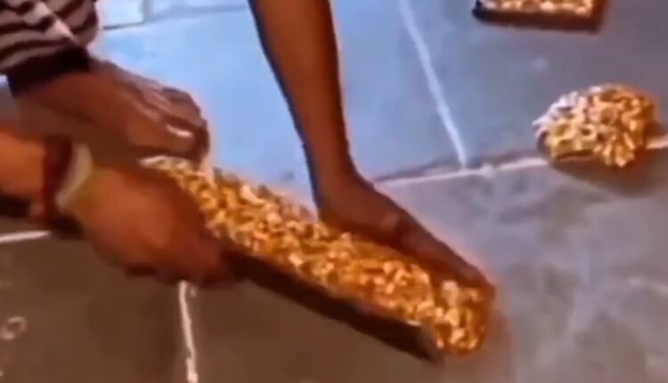 व्हायरल झालेल्या व्हिडिओत तुम्ही पाहू शकता, काही तरुण फरशीवर बसलेले आहेत. फरशीवर बसले असताना, चक्कीचा लेप पायाजवळ आहे. अगदी पायाला देखील चिटकत आहे. चौकोनी आकाराची एक पट्टी आहे. ज्यात गूळ आणि शेंगदाण्याचा लेप ठेवला जात आहे. चौकोनी पट्टी केवळ चारी बाजूने आहे. पट्टीच्या वरती आणि खाली दोन्ही बाजूंनी काहीच नाही.