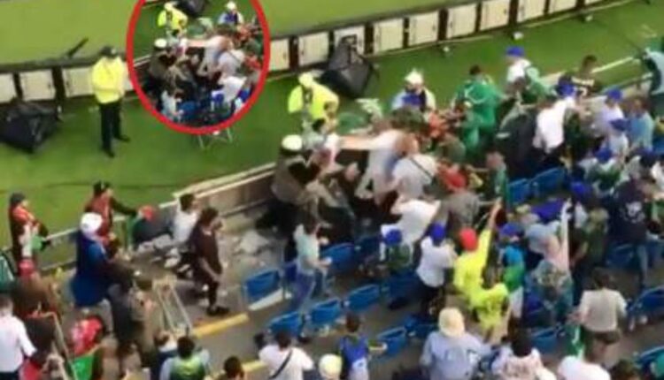 एकीकडे दुबई इंटरनॅशनल क्रिकेट मैदानावर अफगाणिस्तान आणि पाकिस्तान यांच्यामध्ये सामना रंगला होता तर दुसरीकडे मैदानाबाहेर स्टेडियम मध्ये अफगाणिस्थान क्रिकेटचे फॅन आणि पाकिस्तान क्रिकेटचे चाहते यांच्यातही एक सामना रंगल्याचे पाहायला मिळाले. हा सामना प्रचंड रोमहर्षक झाला. विनातिकीट स्टेडियममध्ये प्रवेश करत अफगाणिस्तानच्या चाहत्यांनी पाकिस्तान चाहत्यांना चांगलेच बदडून काढल्याचे एका व्हिडीओत दिसत आहे.