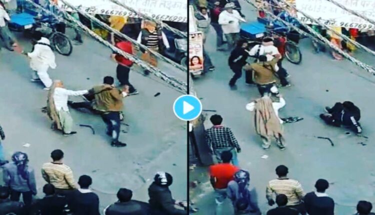 जुन्या संपत्तीच्या वादावरून दोन कुटुंबांमध्ये तुंबळ हाणामारी झाली. व्हायरल झालेल्या या व्हिडिओत चौघे मिळून दोन व्यक्तीला जबर मारहाण करताना पाहायला मिळत आहेत. खाली पडलेल्या दोन व्यक्तींना मारताना या निर्दयी लोकांना यांचं काय होईल? याची कसलीही काळजी नसल्याचे पाहायला मिळत आहे. या व्हिडीओत चार जण दोघांना मारताना, कडेला शेकडो जनांचं समुदाय फक्त उघड्या डोळ्यांनी बघ्याची भूमिका घेताना दिसून येत आहे.