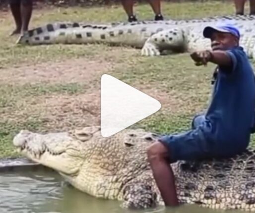 या व्यक्तीला खाण्यासाठी मगर आपलं भलं मोठं तोंड उघडते, मात्र हा व्यक्ती मोठ्या चपळाईने आपल्या हातात असणारा मांसासारखा प्रकार या मगरीच्या तोंडात देतो, आणि स्वतःला वाचवतो. मात्र हे दृश्य पाहताना आसपास असणारे अनेक लोकं प्रंचंड घाबरतात, मात्र या व्यक्तीच्या चेहर्यावर किंचितही भिंती जाणवत नाही. पुढे हा वयोवृद्ध व्यक्ती मगरीच्या पाठीवर बसताना दिसत आहे. मगर या व्यक्तीने दिलेलं मांस खाण्यात मग्न आहे. आणि हा व्यक्ती मगरीच्या पाठीवर बसून डान्स करताना पाहायला मिळत आहे.