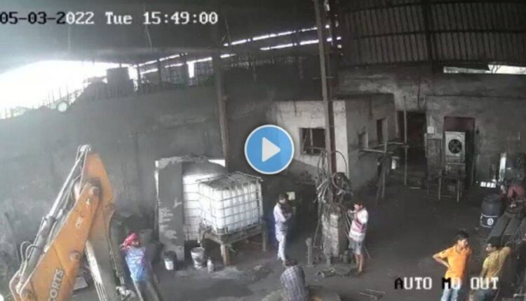 माणसाचे आयुष्य किती क्षणभंगुर आहे, हे पुन्हा एकदा हा व्हिडिओ पाहून सिध्द झाले आहे. माणसाच्या आयुष्यात कधी काय होईल, हे कोणीही सांगू शकत नाही. याच संदर्भातला एक व्हिडिओ सोशल मीडियावर व्हायरल झाली आहे. छत्तीसगडमध्ये (Chhattisgarh) सिलतारा या ठिकाणी कारखान्यात जेसीबीच्या टायरमध्ये हवा भरताना स्पोट केल्याची दुर्दैवी घटना घडल्याचं घटना समोर आलं आहे. एका कारखान्यात जेसीबीमध्ये हवा भरत असताना टायरचा स्फोट (JCB tire burst) झाला. या अपघातात त्याठीणी उपस्थित असलेल्या दोन कर्मचाऱ्यांचा मृत्यू झाला. ३ मे रोजी हा अपघात झाल्याचे सांगण्यात येत आहे.