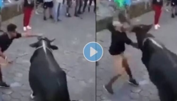 सोशल मीडियावर व्हायरल झालेला व्हिडिओ स्पेन मधील असल्याचचं बोललं जात आहे. या व्हिडिओत एक बैल रस्त्याच्या बाजूला शांत उभा असल्याचं दिसत आहे. इतक्यात एक तरुण हातात काठी घेऊन या बैलाच्या दिशेने येतो. आणि बैलाच्या शिंगाना एका हाताने पकडण्याचा प्रयत्न करतो. तेवढ्यात या बैलाची तळपायाची आग मस्तकात जाते. आणि काही कळायच्या आत या तरुणाला आपल्या शिंगाने बैल धडक देतो. तरुण या धक्क्यात जमिनीवर कोसळतो.