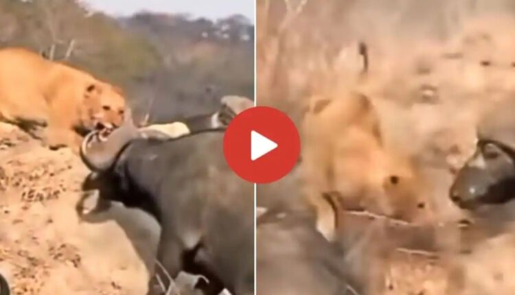 Viral video: सिंहाच्या जबड्यातून लेकराला सोडवण्यासाठी म्हशीला द्यावा लागला जीव; लेकरू तर वाचलं पण..